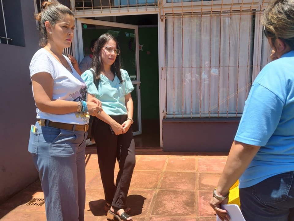 Junto a la Jefa de la Sección, Gabriela Galeano, recorrieron los Espacios de Primera Infancia que funcionan en la ciudad, en el barrio Autódromo, kilómetro 4, y en el barrio 8 de Diciembre, kilómetro 6.