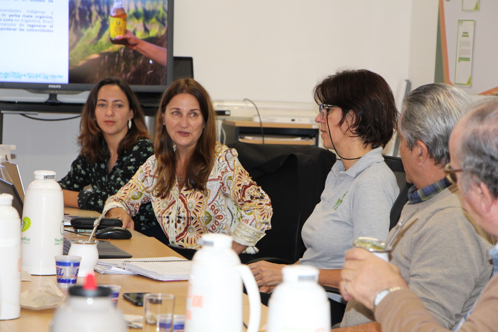En la sede del INYM, en Posadas, ante los directores, la vicepresidenta de Guayakí para Latinoamérica, Fabiana Rosa Pose, junto a la consultora para Impacto y Sustentabilidad, Rocío Bermúdez Pose, compartió los resultados de la experiencia que llevan adelante en zona Norte y Centro de la provincia de Misiones, destacando los beneficios de esta forma de producción para los desafíos actuales, dado que confiere resiliencia al cultivo de yerba mate ante fenómenos climáticos extremos, como períodos de sequía o de lluvias repentinas intensas, con impacto directo en la productividad.